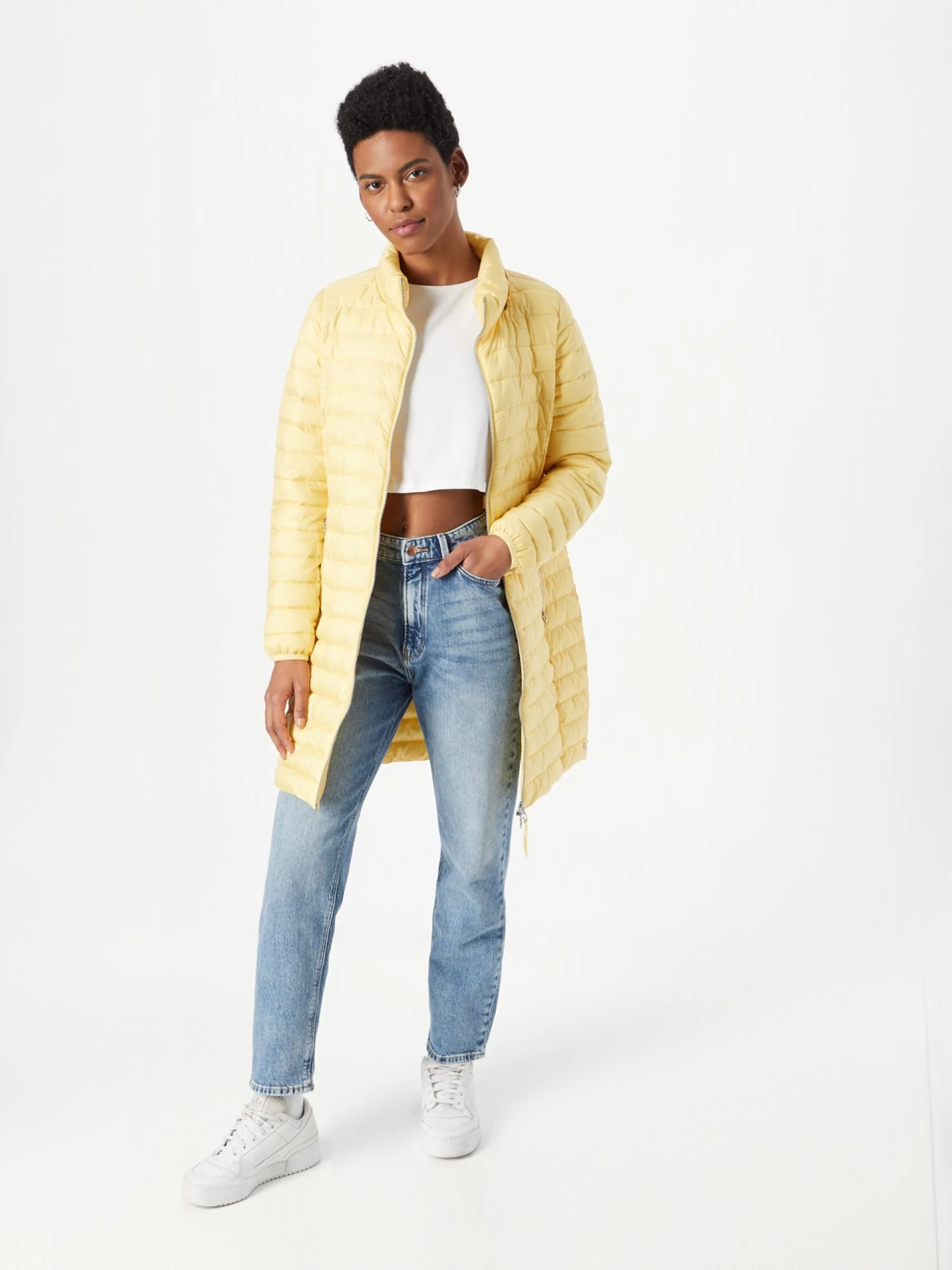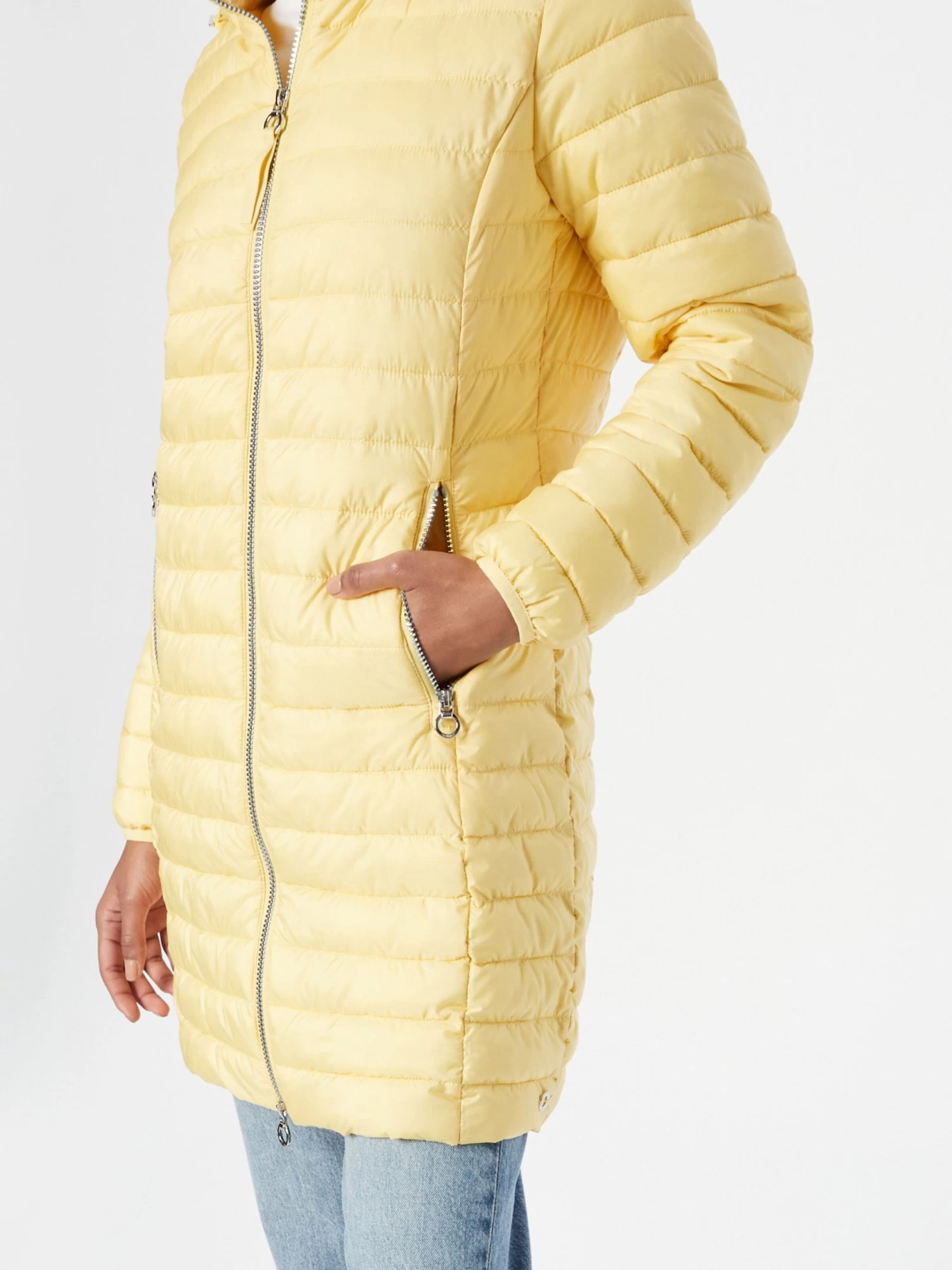 Couleur unieDoudoune matelasséeOurlet droitCapuche avec col montantFermeture éclair bidirectionnellePoches latérales avec fermeture éclairPiqûres de finitionsCoutures ton sur tonLégèrement doubléFermeture à glissière