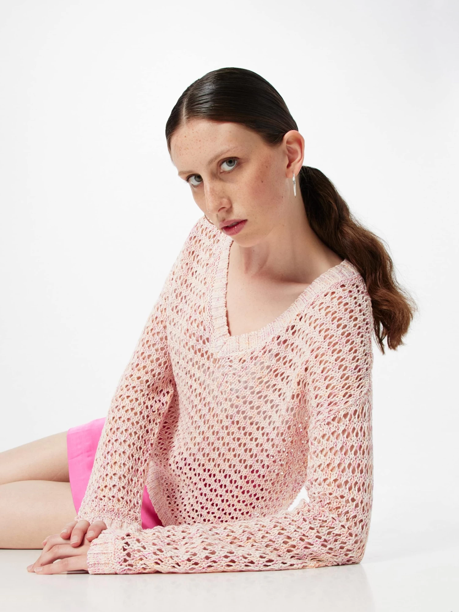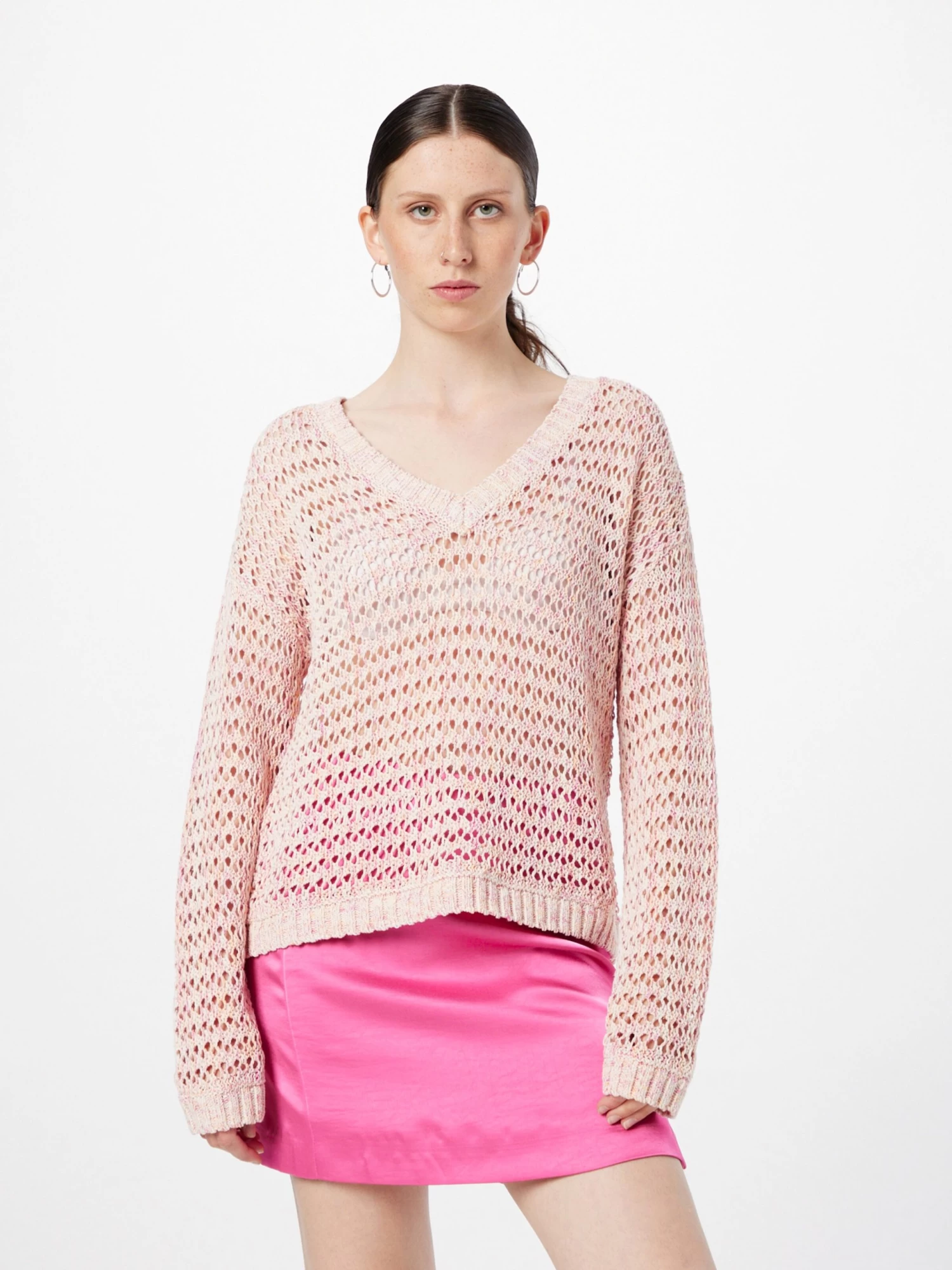 MélangeCotonCol VMotif à trousCol côteléOurlet droitBord côteléTricoté en maille ajouréeMotifs all-over